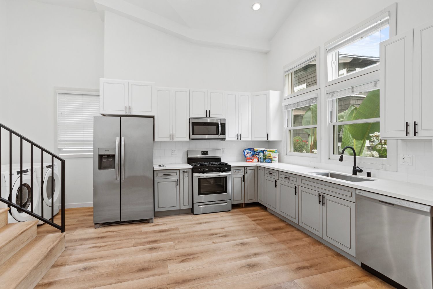 It has wood & tile floors throughout, high-end appliances, in-unit laundry, and each bedroom has its own bathroom.