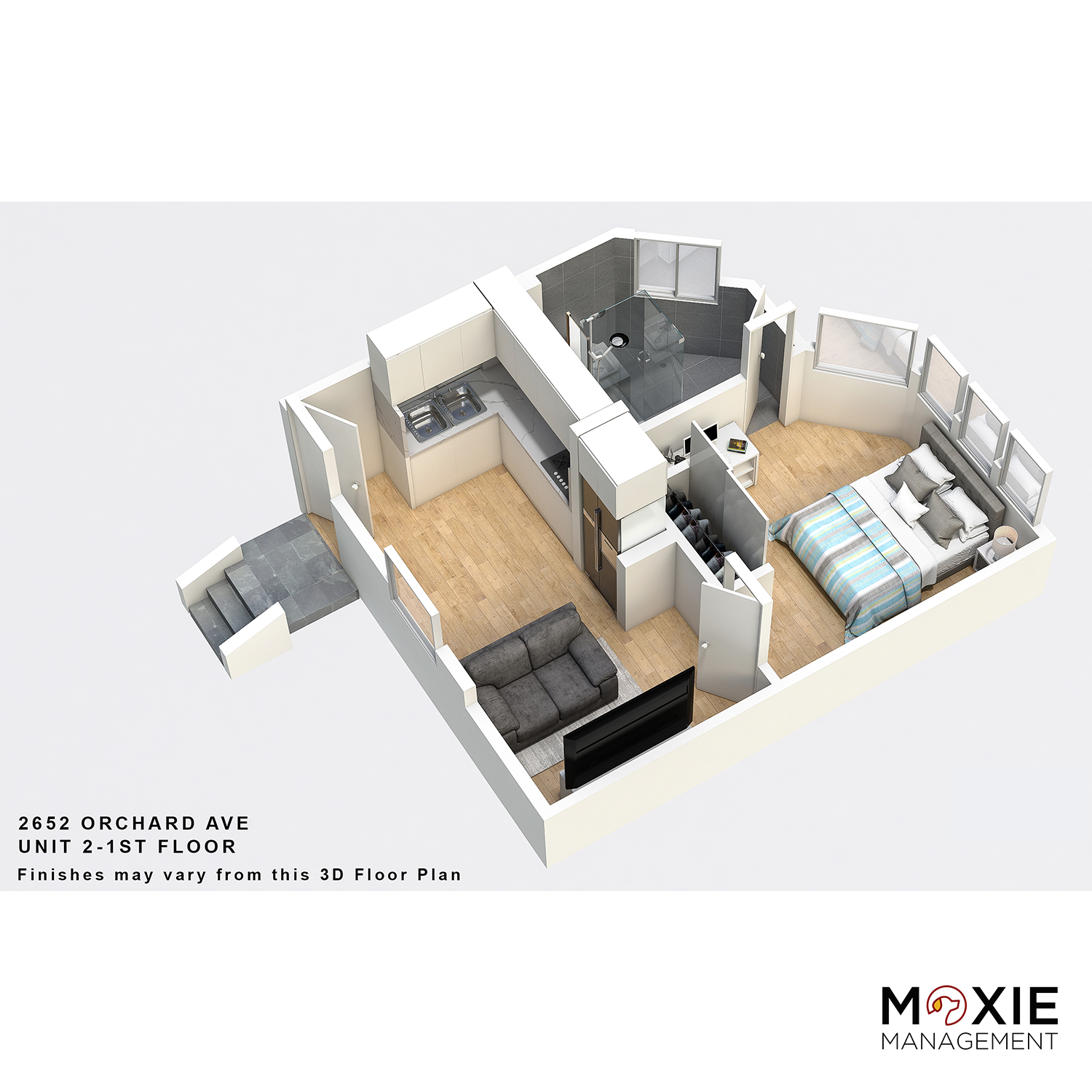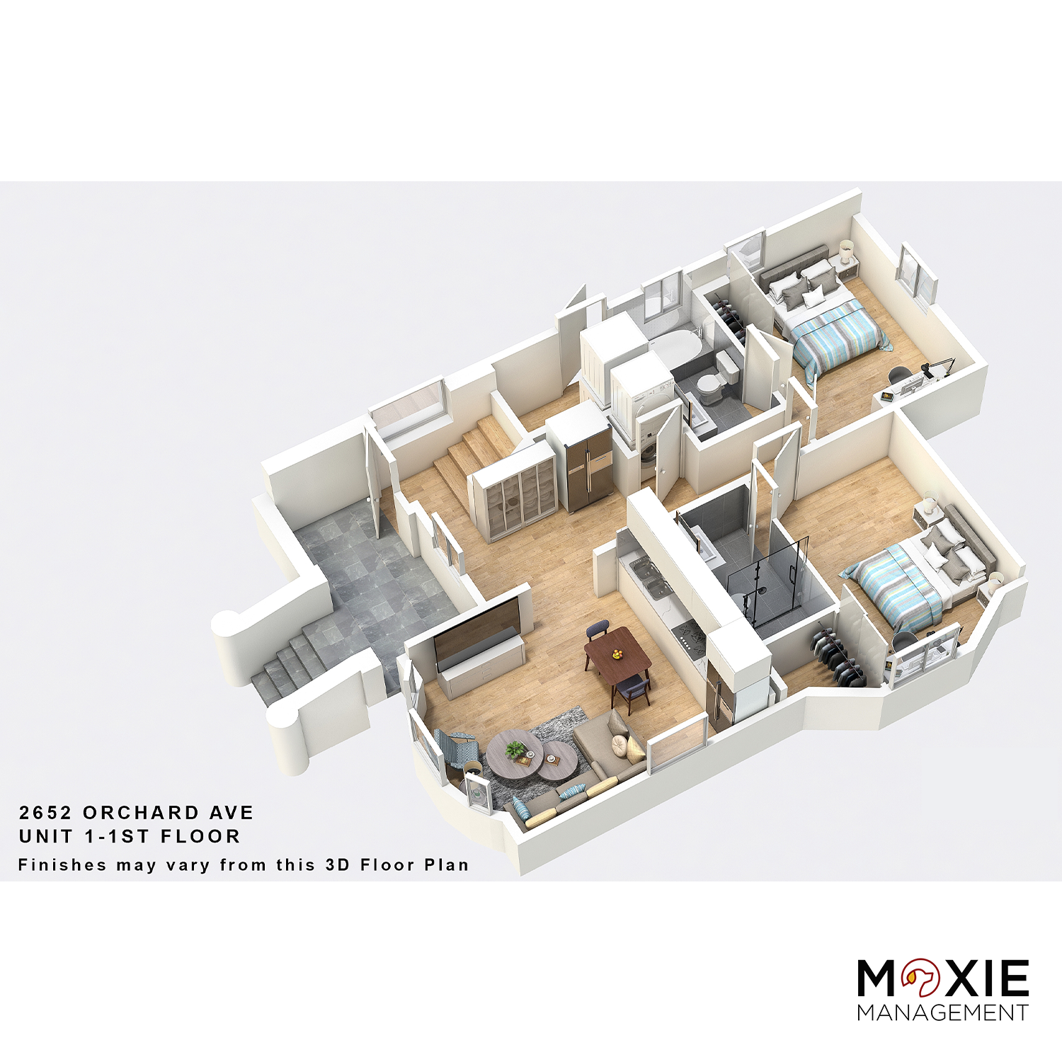 The kitchen is fully equipped. There is a designated laundry area, living room, entryway. It has 2 studios in the back. Each unit has a separate entrance.